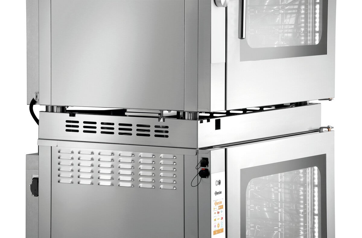 La soluzione salvaspazio: il kit di collegamento consente di impilare 2 forni a vapore combinati elettrici GN 1/1 delle serie Silversteam.