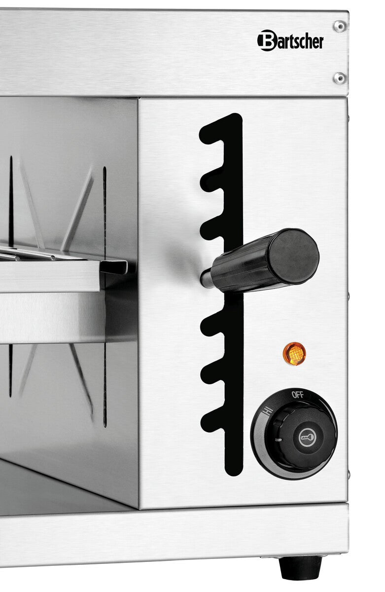 Gratinare, passare al forno e tenere in caldo direttamente sul pass per un flusso di lavoro scorrevole. Quando è posizionata su un tavolo da lavoro, i due lunghi lati aperti della salamandra offrono un pratico funzionamento su due lati all'interno della cucina o nell'area di servizio.