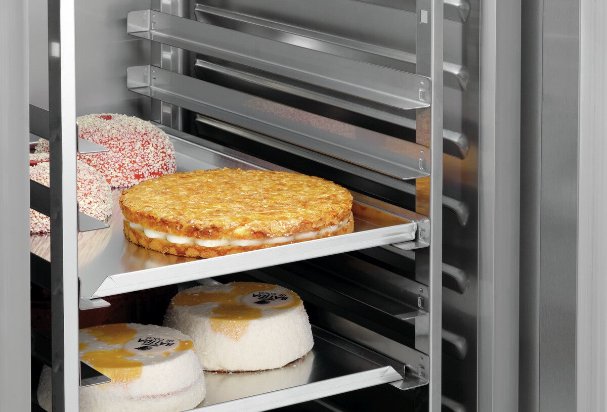 Preparare dolci e torte, pane e panini, raffreddarli e conservarli in modo professionale sull'apposita teglia fino al momento di servirli o di lavorarli ulteriormente. Il frigorifero standard per panetterie crea spazio sufficiente in panetterie, pasticcerie, caffè e cucine di hotel.