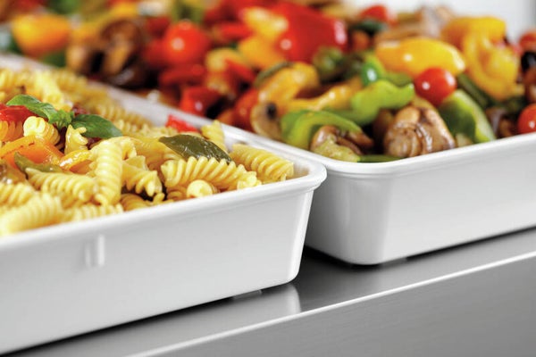 Presentare in modo accattivante pietanze e generi alimentari nell'area espositiva. I vassoi da esposizione in melamina di alta qualità offrono un'ampia varietà di opzioni di posizionamento ai massimi livelli e con un design accattivante.