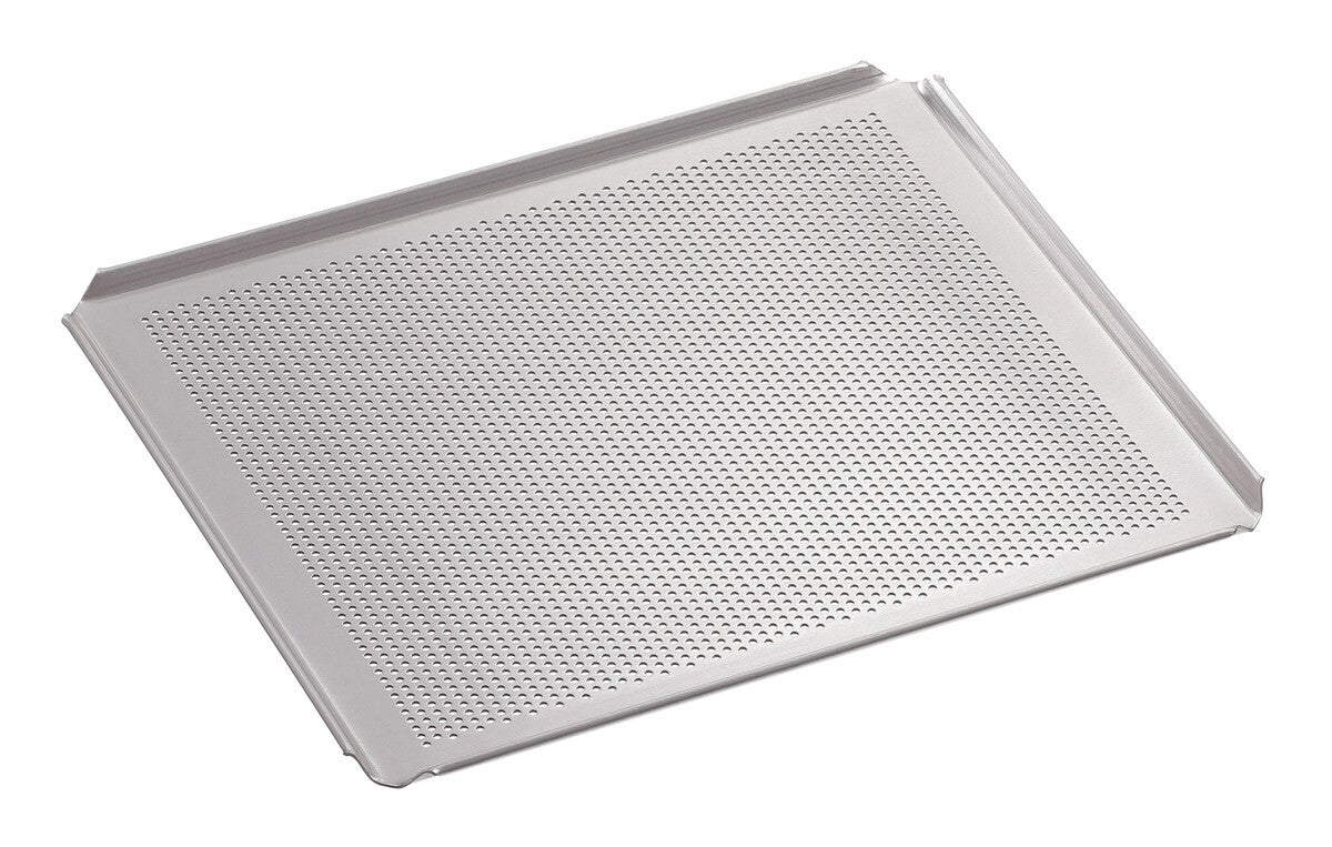 La teglia forata in alluminio nel formato GN 2/3 è resistente alle temperature fino a 260 °C. Il bordo su 4 lati consente una cottura e un trasporto sicuri.