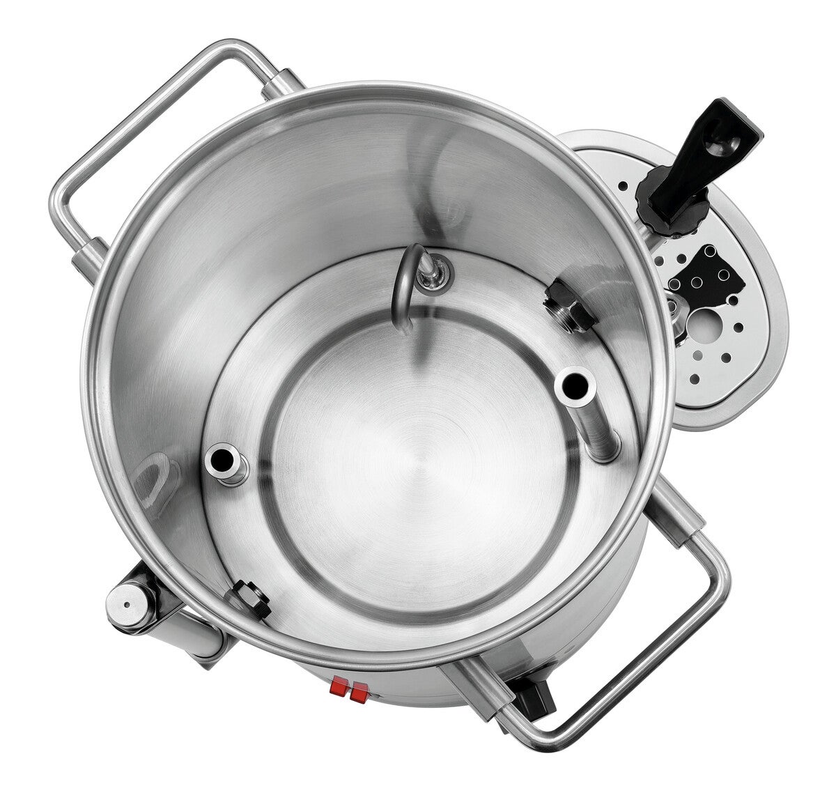 Il distributore di acqua calda per un fabbisogno continuo di acqua calda: grazie all'attacco fisso per l'acqua e al riempimento automatico, il distributore di acqua calda è ideale per le aree self-service più frequentate.