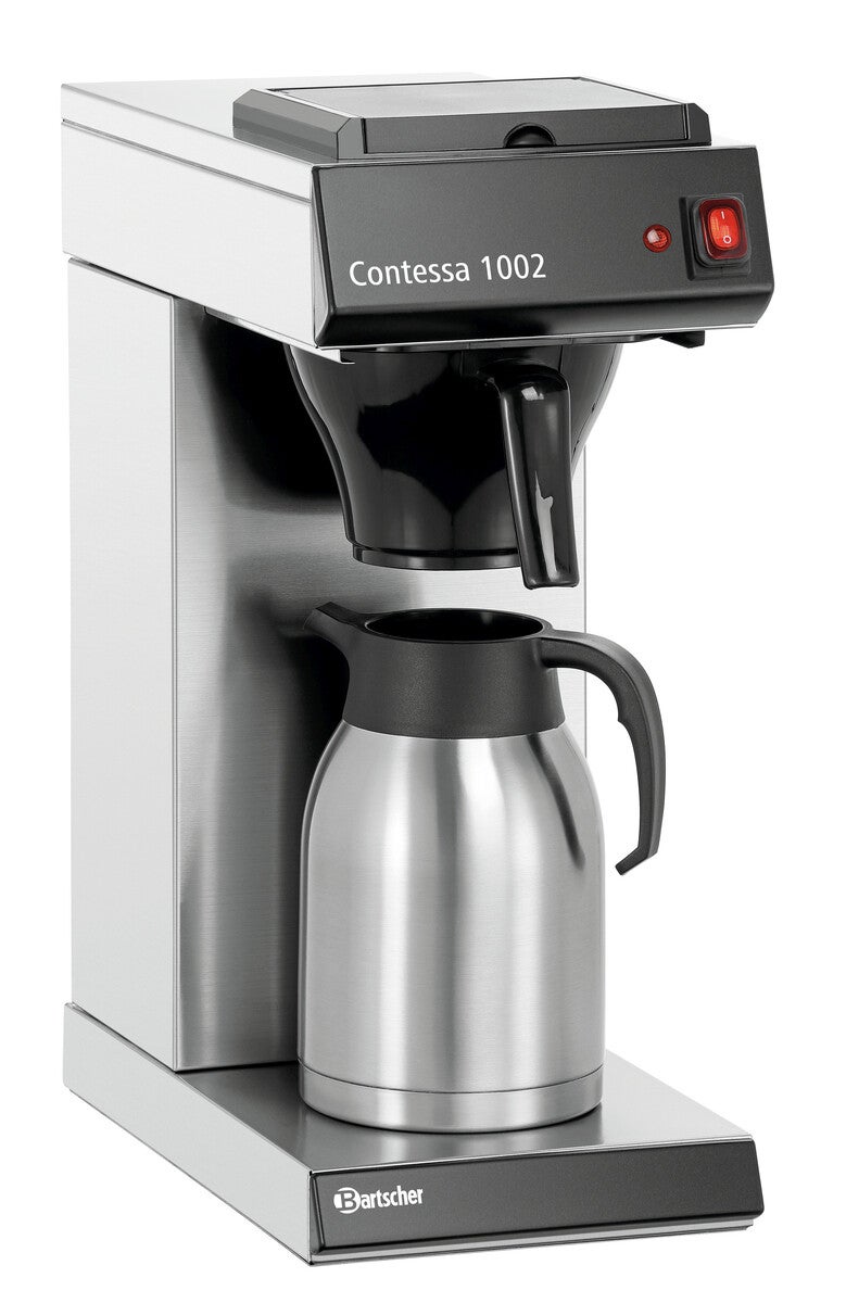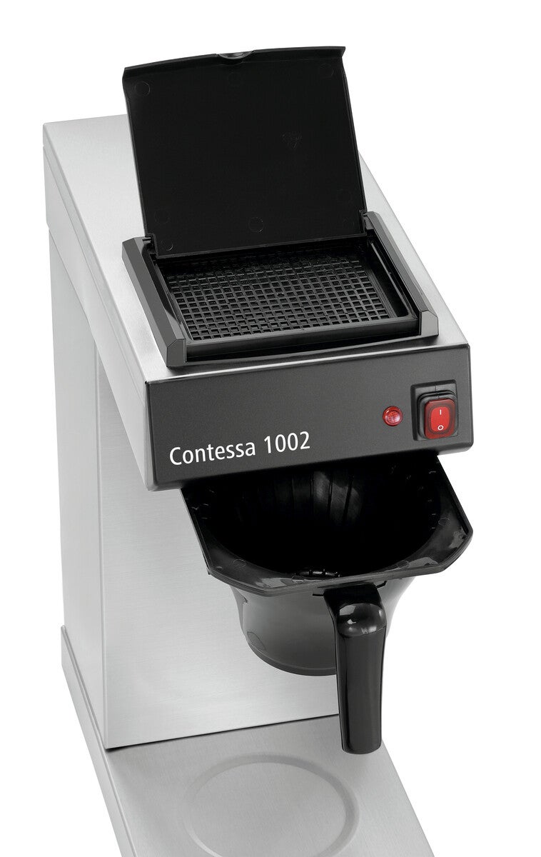 Ideale per buffet, catering o eventi: 2 litri di caffè americano appena preparato possono essere serviti direttamente nel thermos in acciaio inox, senza la necessità di versarli. L'elemento riscaldante in acciaio inox della Contessa 1002 assicura un perfetto trasferimento del calore.