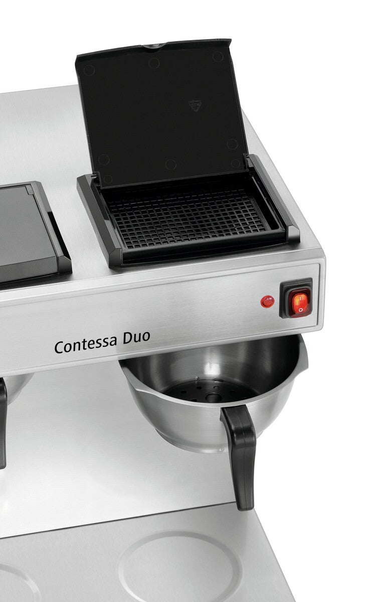 La macchina da caffè perfetta per servire il caffè americano al buffet, durante i catering o gli eventi. Con la Contessa Duo è possibile preparare fino a 13 tazze direttamente nel thermos. Gli elementi riscaldanti ottimizzati in acciaio inox offrono una migliore trasmissione del calore.