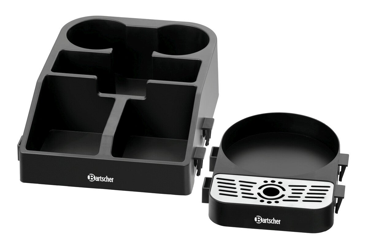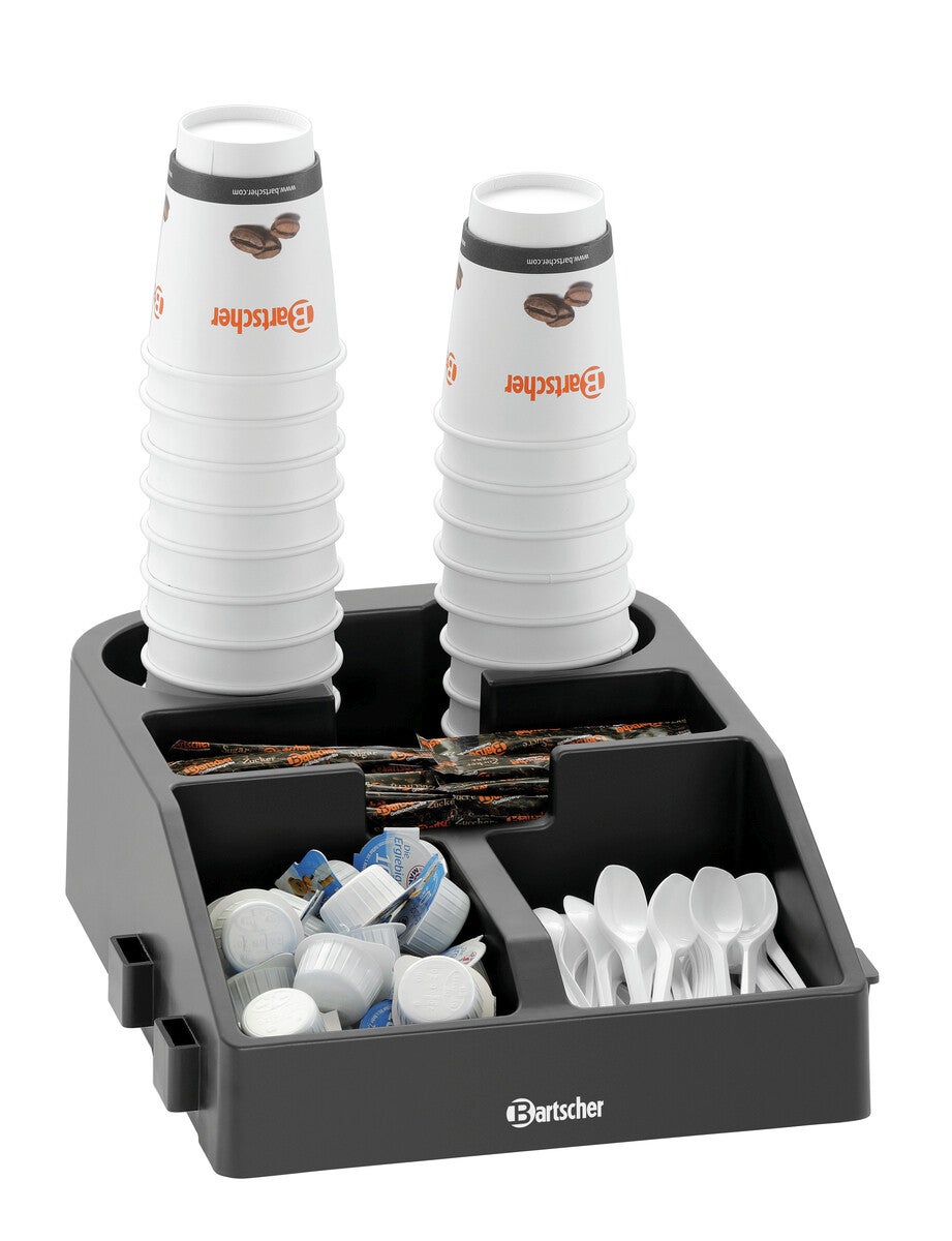 Ben ordinate e poco ingombranti, le tazzine, i cucchiai per mescolare e simili possono essere offerti con la Z50 nei buffet e nell'area self-service per il caffè o alla cassa.. Il punto forte, tuttavia, è il sistema plug-in: le vaschette di sgocciolamento per i thermos, disponibili come optional, possono essere alternate con la stazione per il caffè in base alle esigenze individuali.