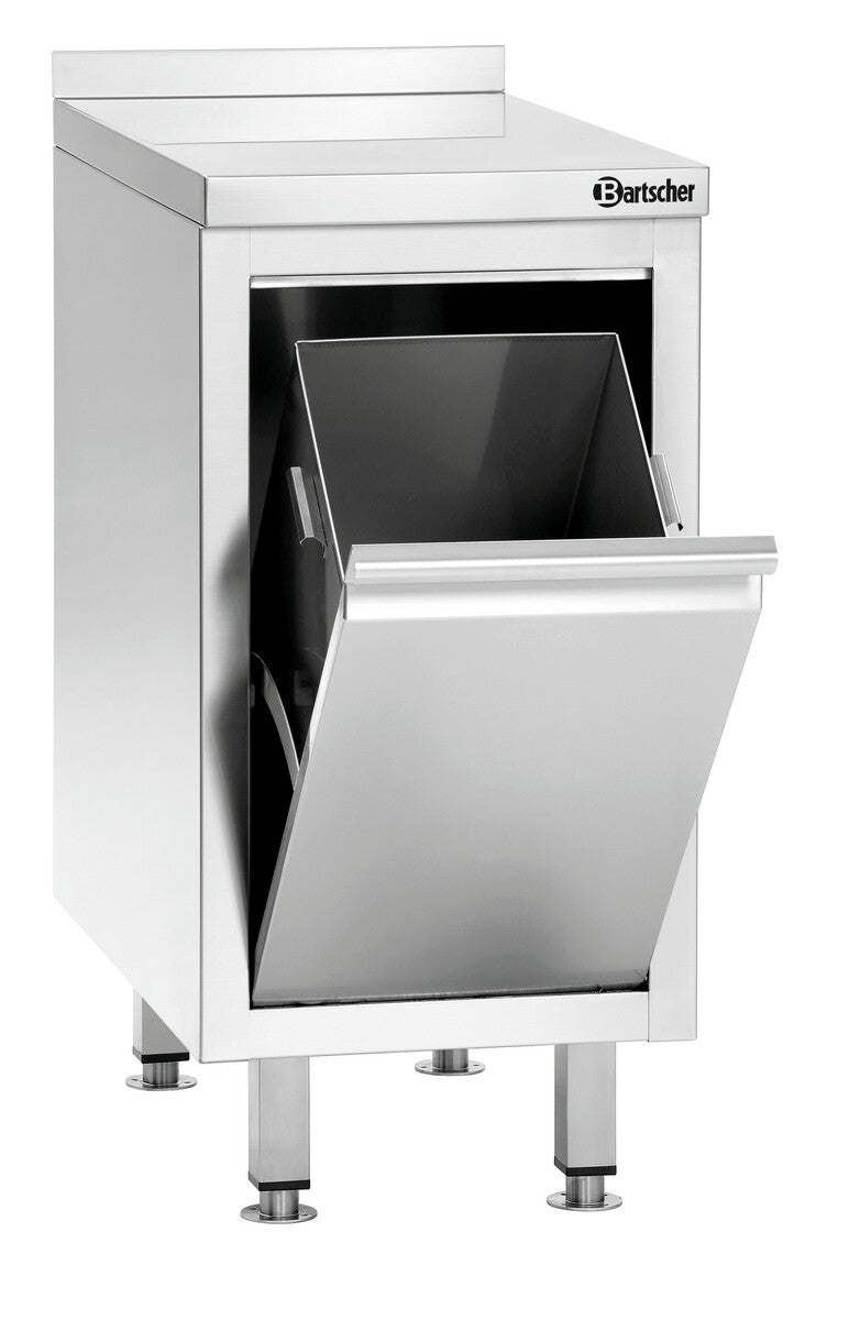 Armadio portarifiuti della serie di mobili in acciaio inox Bartscher. Il contenitore interno estraibile consente uno svuotamento e una pulizia facili.